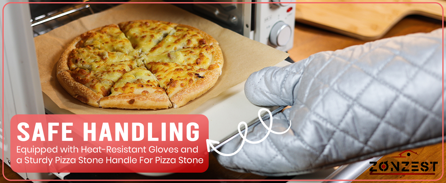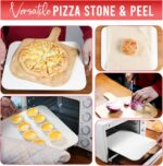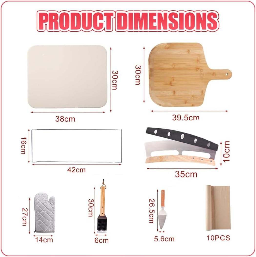 • 【8 PCS Convenience】 The ZONZEST ceramic pizza stone set has everything for perfect homemade pizzas. It includes a pizza stone handle, bamboo pizza peel, rocker cutter, pizza server, heat-resistant gloves, 10 parchment papers, and a stone scraper with a grill brush for easy cleaning. This all-in-one kit makes professional-quality pizza effortless!