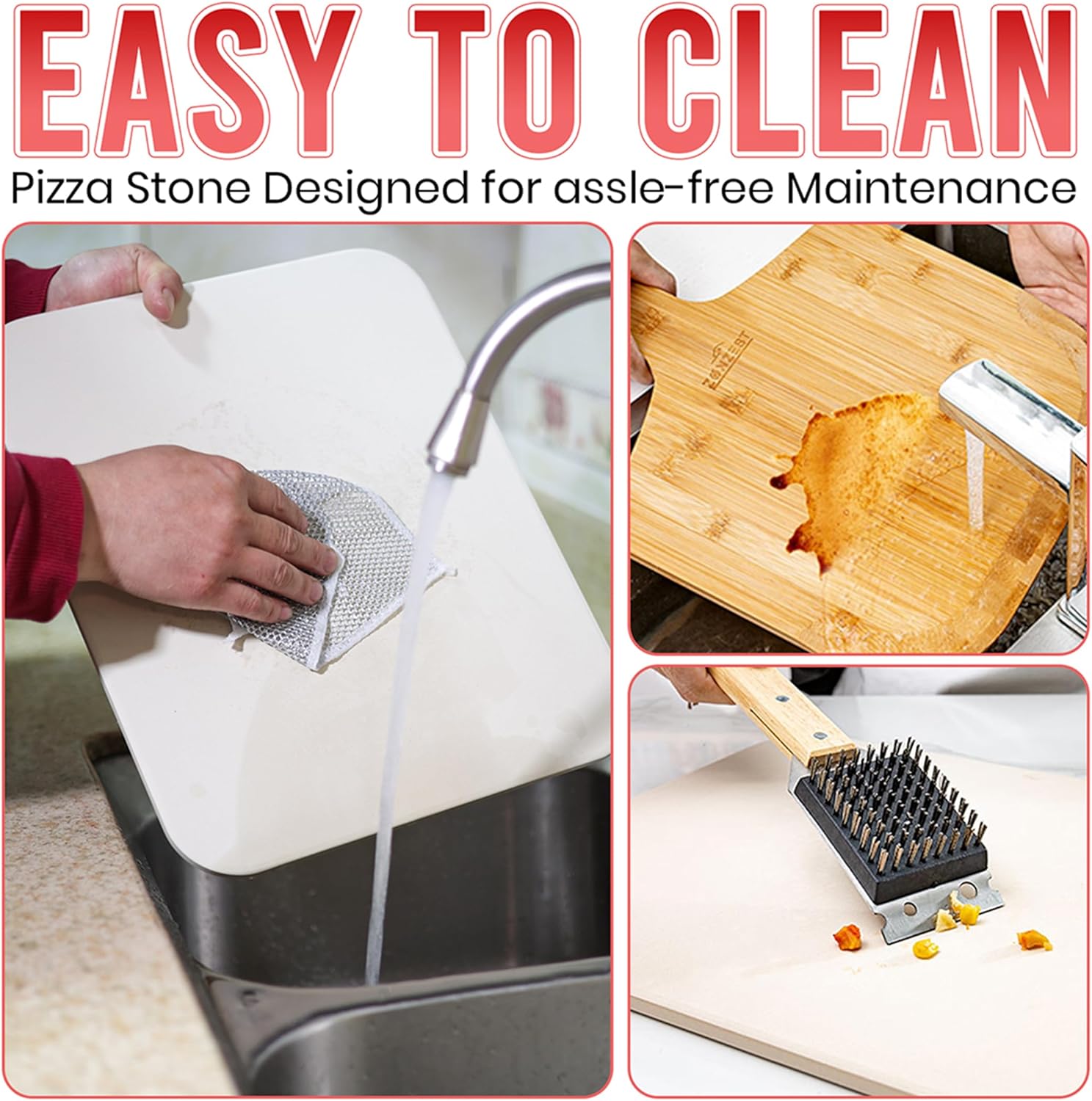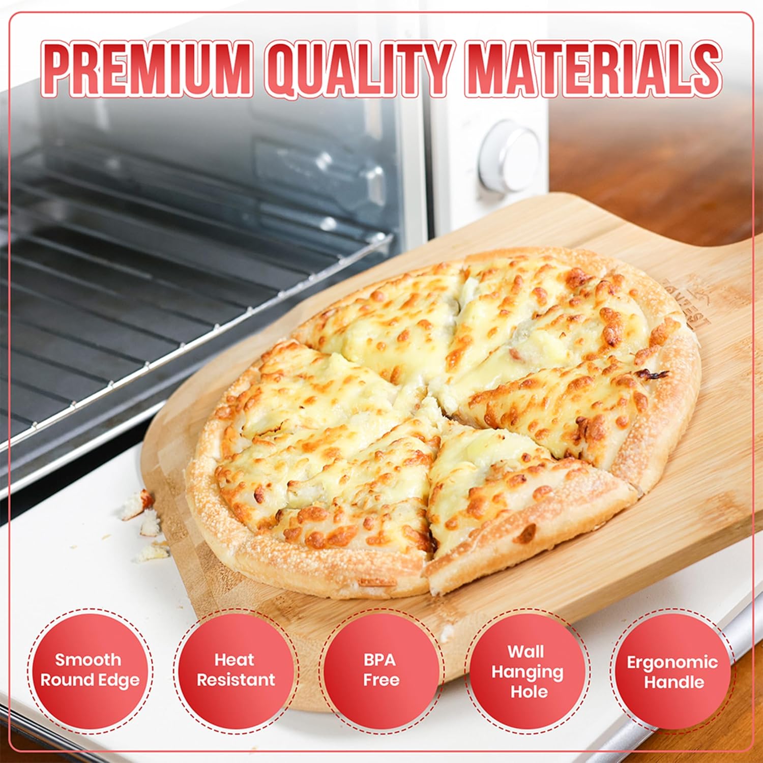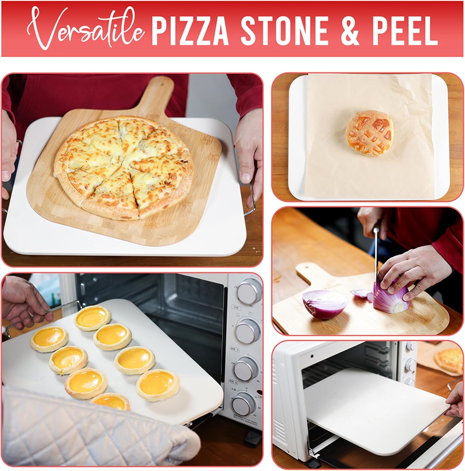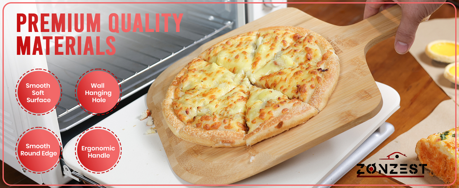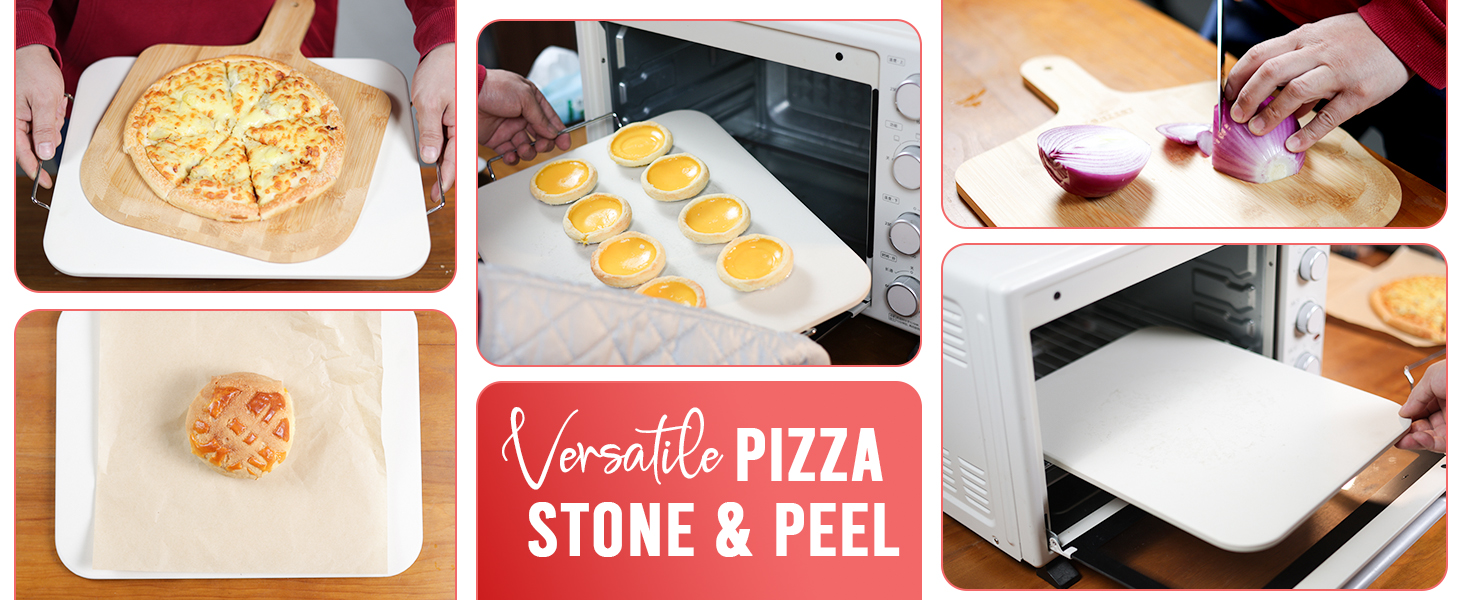 • 【Premium Quality Materials】Crafted with Durable Materials, Featuring a Pizza Stone Made to High Temperature Cordierite the Pizza Stone is in Your Oven for 30 Minutes at 400+ Degrees for Optimal Pizza Baking, Complemented by a Sturdy Bamboo Pizza Peel for Easy Handling and Serving.