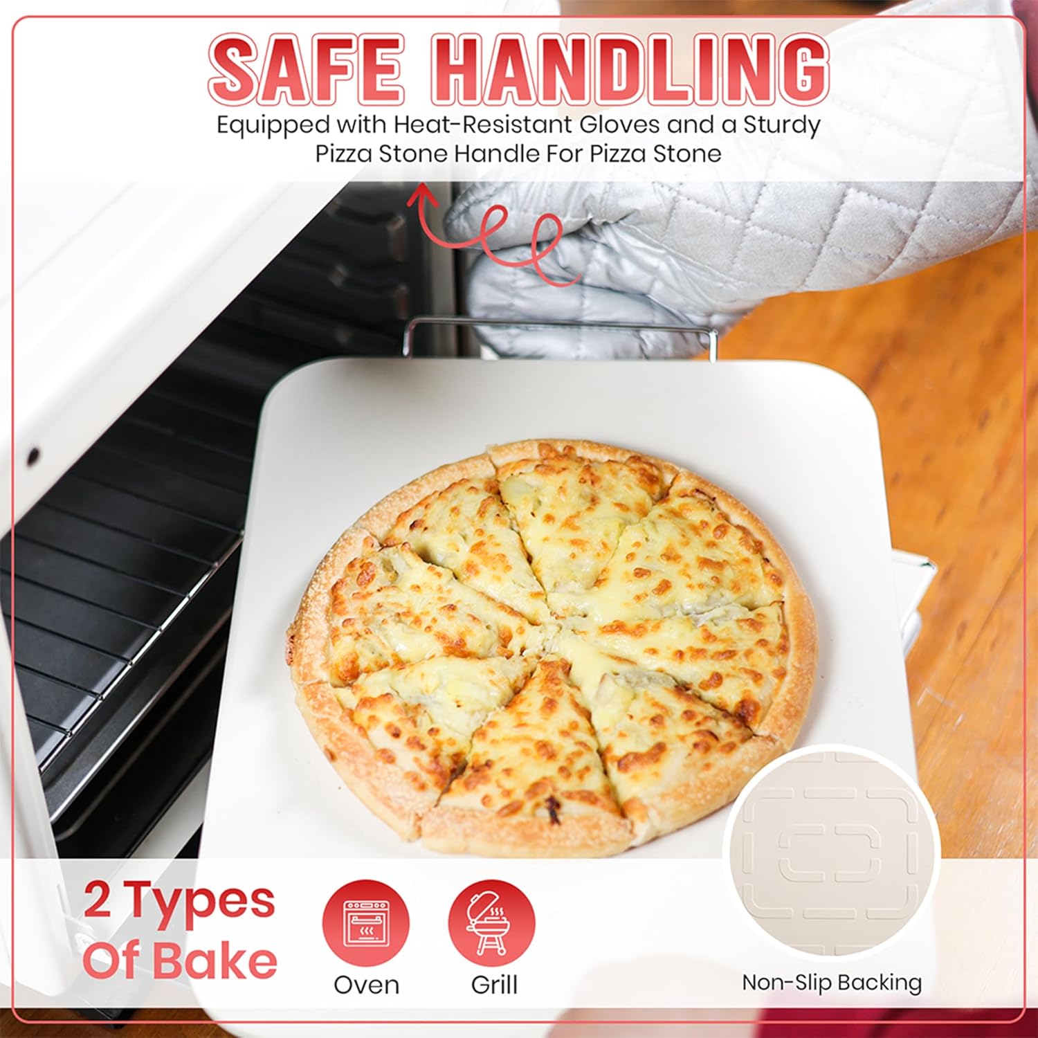 8PCS Pizza Stone Set – 15″ x 12” Large Rectangle Baking Stone for Oven & Grill with Pizza Peel, Cutter, Server, Gloves & Baking Paper – Perfect for Pizza, Bread & BBQ Grilling